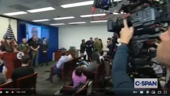 “So the whole time, right where, the whole time being escorted in this federal building by somebody from the National Guard, somebody from the FBI, I’ve gone through screening. This is a federal building, and so I tell them, let’s go listen to the press conference.