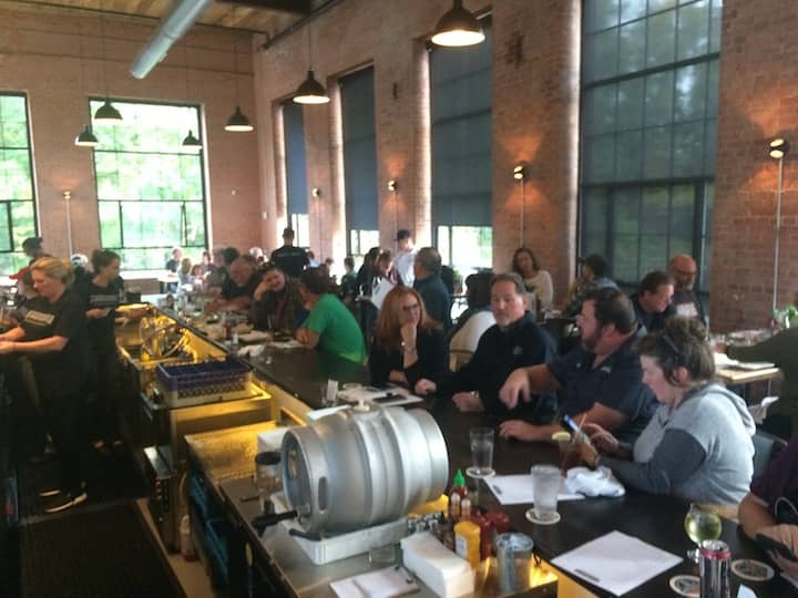 The craft brewery offers tacos, flat breads, sliders and appetizers along with a selection of stouts, festbiers, ales and IPAs, marketed along an industrial theme with names including Weathering Steel and Raw Materials.