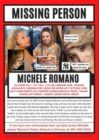 ![CREDIT: Unsolved RI] Michele Romano was reported missing in July 2024.Her remains were recently discovered in Foster. State and local police are investigating Romano's death.](https://warwickpost.com/wp-content/uploads/2025/03/WPD-Michele-Romano-Missing-Warwick-Woman-336x474.jpg)