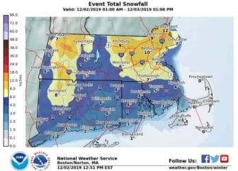 WARWICK, RI — Ahead of an expected 3 to 5 in. of snowfall, the National Weather Service issued a Winter Weather Advisory and Hazardous Weather Outlook effective Monday night at 7 p.m. through Tuesday afternoon at 1 p.m.
