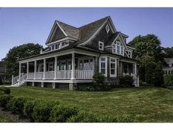 This newly built [2014] four-bed Nantucket-style home offers views of Warwick Cove and Narragansett Bay.