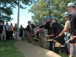 Warwick, RI – Federal, State and City officials broke ground today on a $17 million upgrade of the Warwick Wastewater Treatment Facility at the site, including $3.6 million to raise the levee protecting it by five-and-a-half-feet.