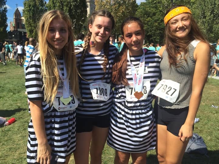 At roughly noon Sunday, Tollgate School students joined hundreds of high schoolers gathered at Station Park across from the State House, all dressed in themed costumes for the Tufts Health Plan High School Inspirational 3k.