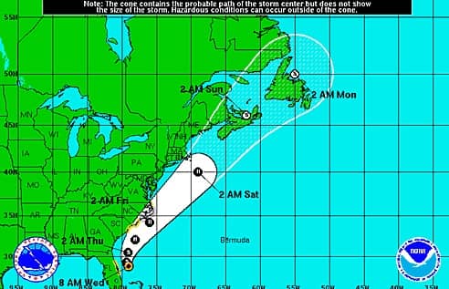 The storm is expected to strengthen to hurricane-force, and North Carolina is under a hurricane watch, but forecasters are only predicting heavy rain for the Rhode Island area from Arthur.