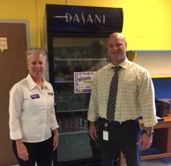On Monday, Patti Avin of Tutor Doctor RI visited the school equipped with food and drinks for Warwick Veterans Middle School staffers, and loaded up the school fridge. Principal David Tober gave her a hand,