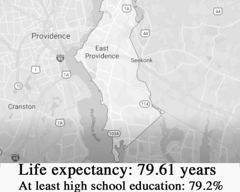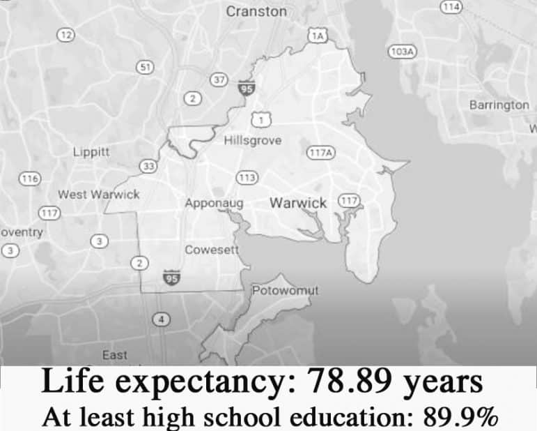 So, the researchers studied life expectancy for each of Rhode Island’s 39 municipalities, looking at the potential for education, wealth, crime, environmental factors, and housing to play a role.