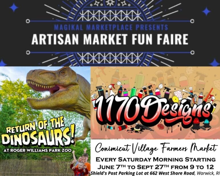 WARWICK, RI — Come on out this Warwick weekend and experience an artisan market fun faire and a cars and coffee event, along with the usual farmers markets and dinos.