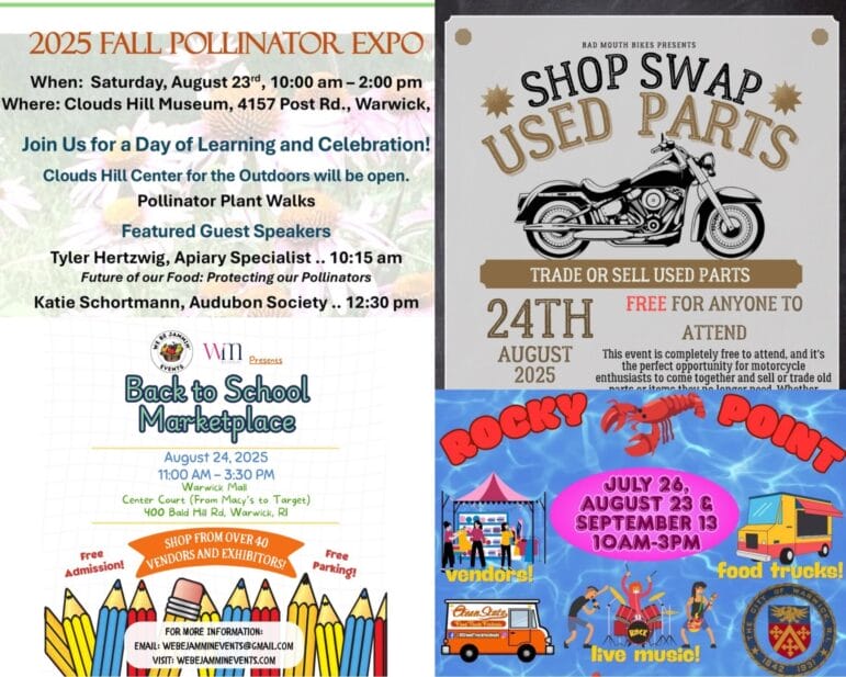 WARWICK, RI — Enjoy one of the last Warwick weekends before back to school by attending a Back to School Marketplace, Summer Fun at Rocky Point, a biker swap meet, or the 2025 Fall Pollinator Expo.