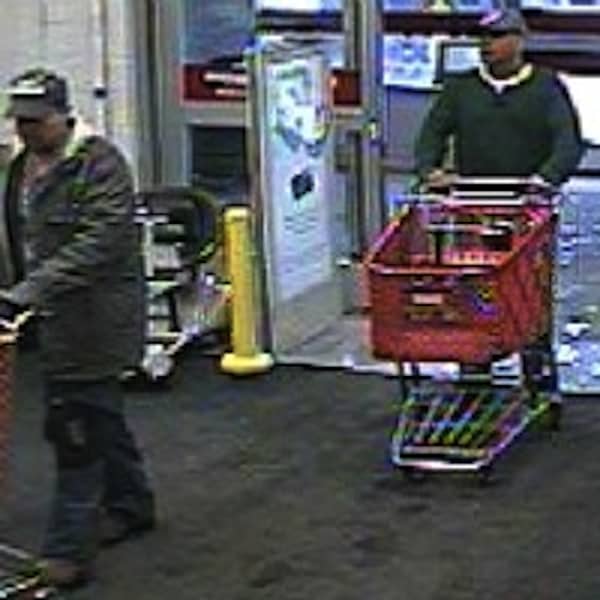 According to police, the two men went into the store just past noon and ran out pushing two carriages full of tools, including a DeWalt combo kit and a Husqvarna chainsaw.