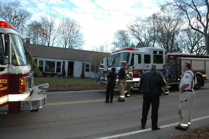 [CREDIT: Rob Borkowski]Police and firefighters outside 220 Diamond Hill Road shortly after Warwick Firefighters put out a living room fire in the home.